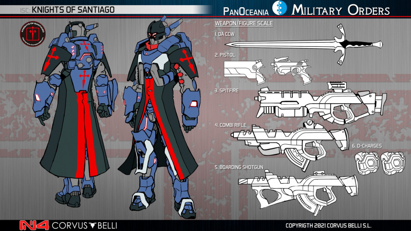 Most notable is the faceplate of all members of the Ninth Tail. Instead of a traditional helmet, a flexible, heavy hood made of alloy scales is donned alongside a circular faceplate inscribed with the symbol of the Ninth Tail in violet highlights: a lotus flower. This appearance is topped off with a "battle skirt" made of a tough violet fabric suitable for getting torn up in combat (see Bronze and Knight of Santiago from Infinity N5 for reference).